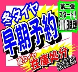 早期予約第二弾は、明日までです! ポスト 2016年9月10日 冬タイヤ早期予約の第二弾は、今日を含めてあと2日で終了となります!夜7時まで営業しておりますので、今日もまだまだ間に合いますよ!「今買っても邪魔だし、ギリギリでいいわー」というお客様のために、履くまで当店でお預かりのサービスもやっております!ギリギリの購入だと在庫がなかったり…、今よりも高い金額だったり…、良い事はひとつもないのです(>_<) 担当:あまの