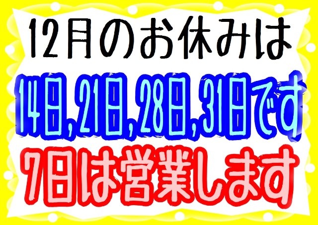 明日、21日(水)は定休日となっております。