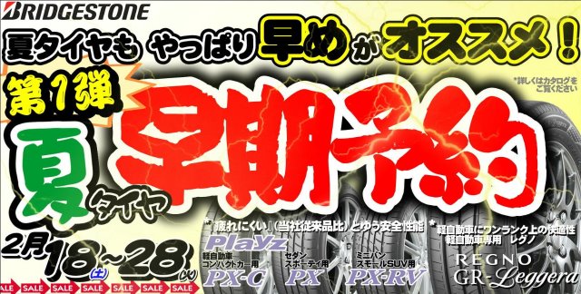 夏タイヤの早期予約第1弾を開催いたします\(^o^)/