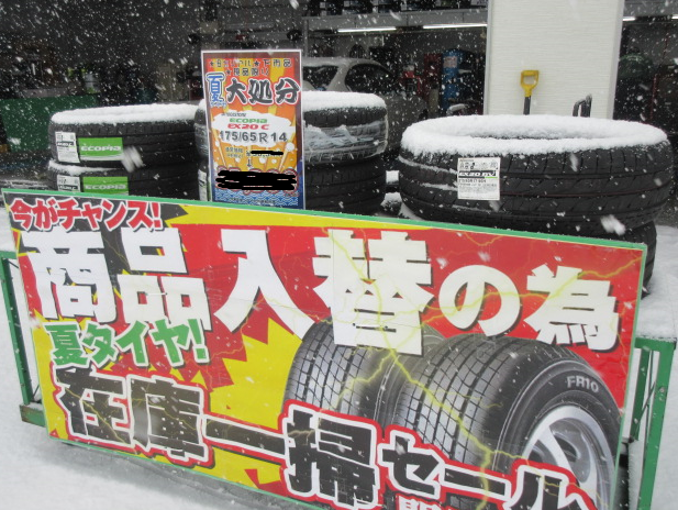 『夏タイヤ!』って書いてあるのに雪積もってるとか、季節感なさすぎですねw