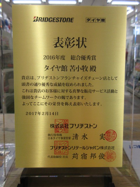 タイヤ館苫小牧は総合優秀賞で表彰されましたーーーーーー\(^o^)/