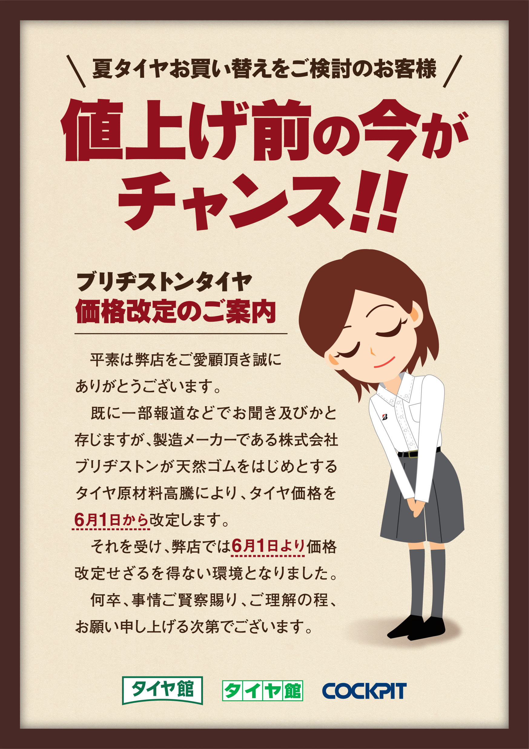 タイヤの値段が6月から上がります(>_<)!!!!!!