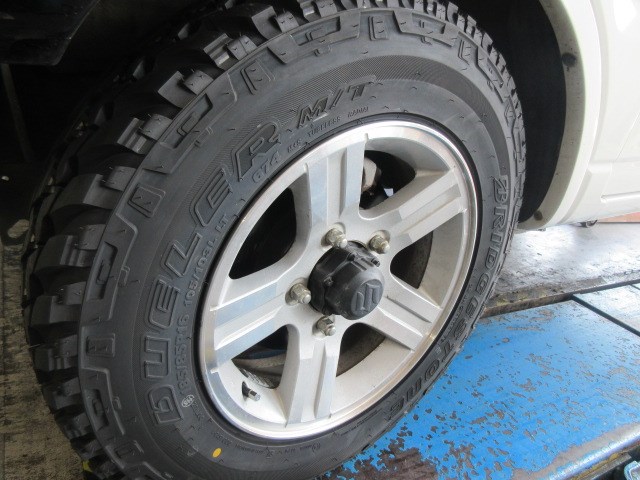 こちらのタイヤはSUV専用の『M/T(マッド・テレーン)タイヤ』といいまして、オフロード(舗装されていない道や泥濘地)での走破性を高めたタイヤなのです٩( 'ω' )و