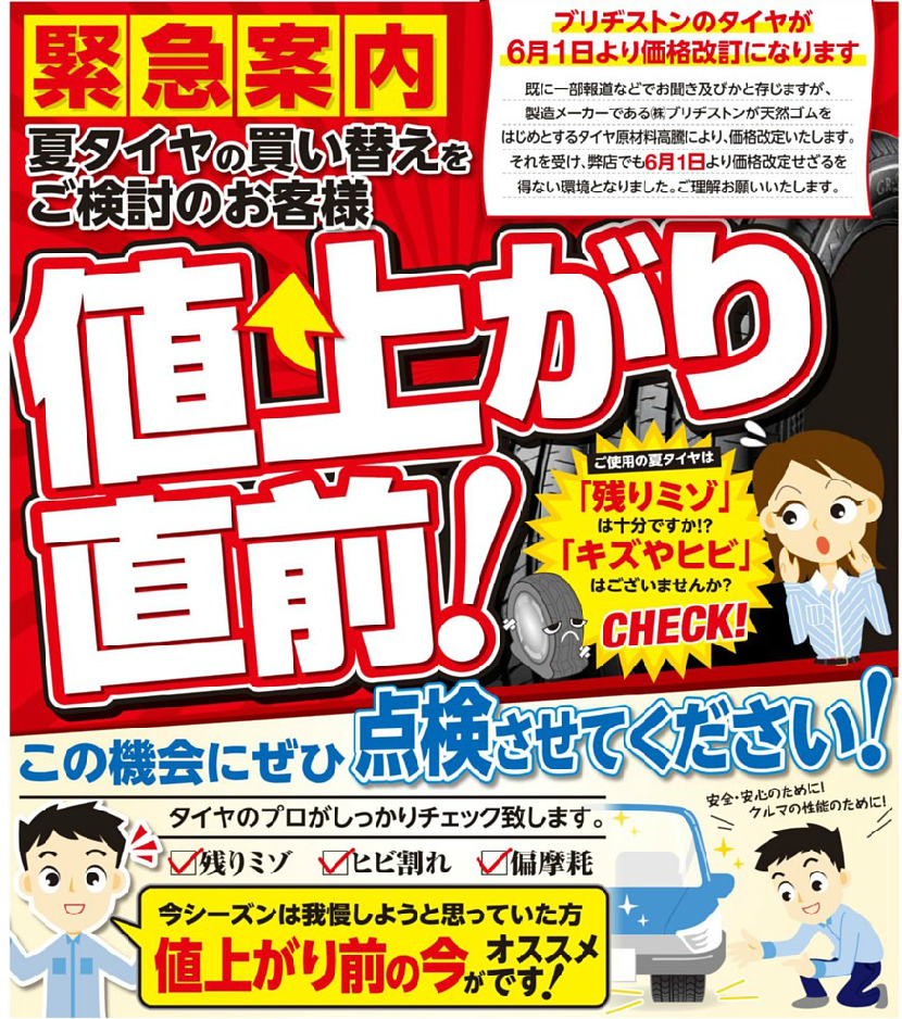 【 タイヤ値上がりまであと半月 】なんですよ!