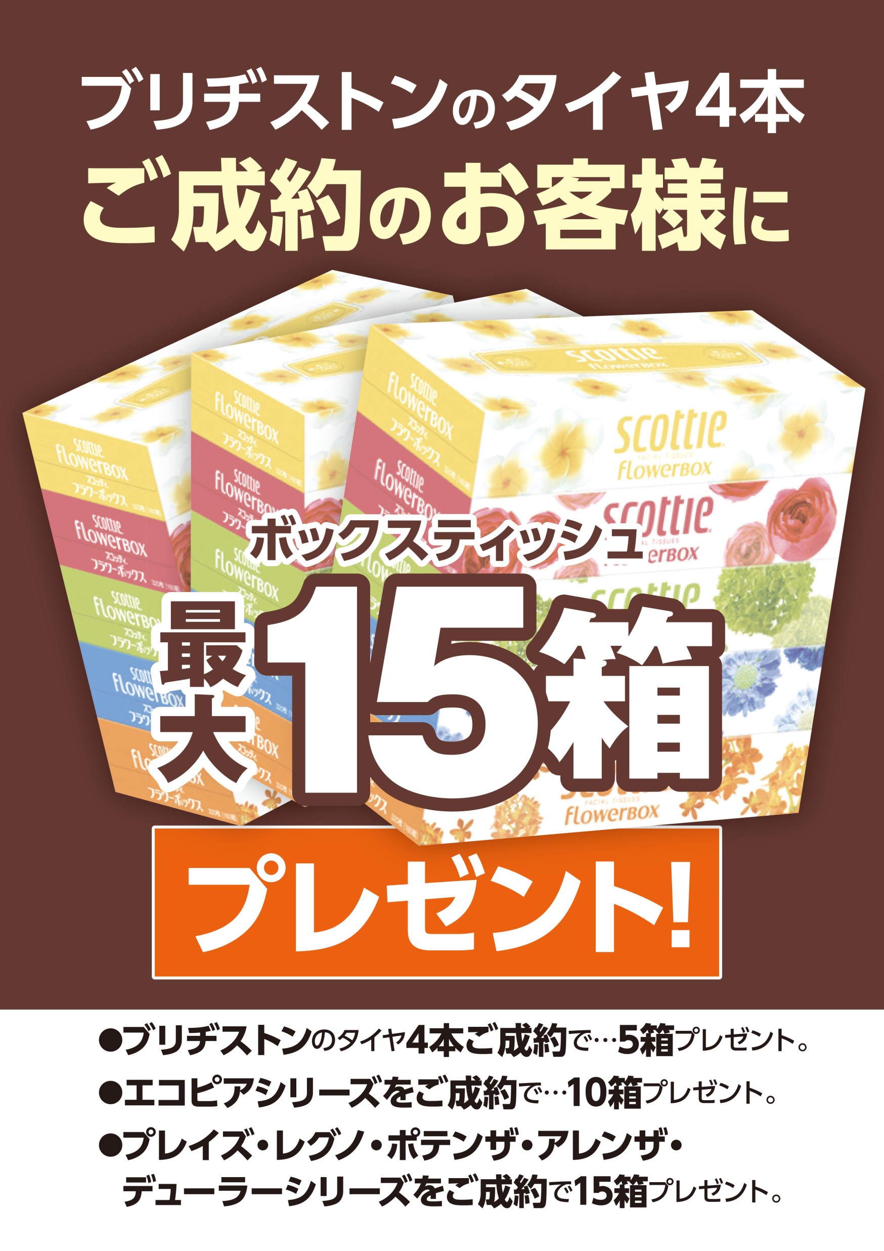 なんとボックスティッシュを最大15箱プレゼント!!!