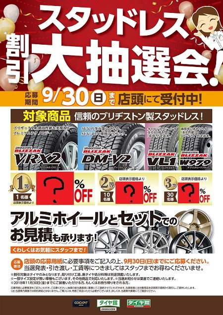【 スタッドレス割引大抽選会 】 を開催中です!!!