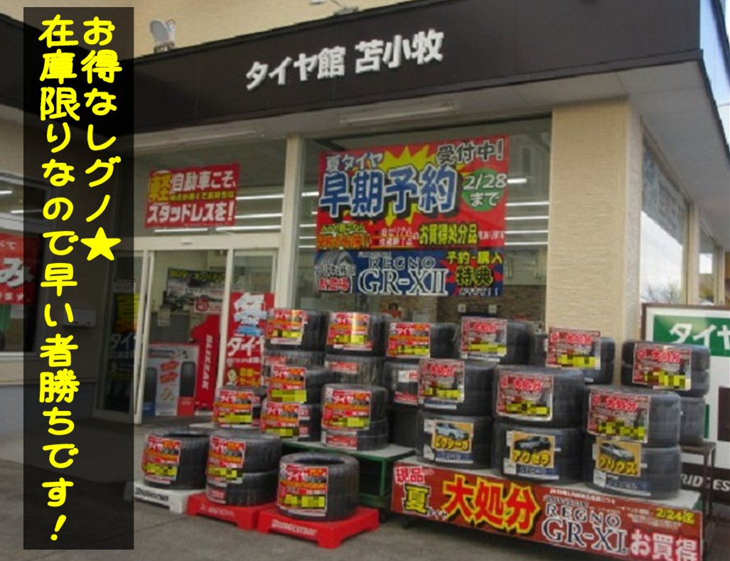 現在開催中の【 夏タイヤイベント 】では、早期予約や在庫処分のセールを行っております。