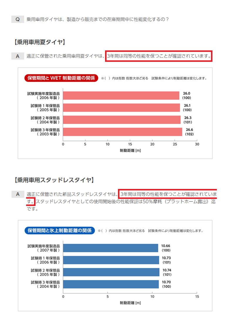 3年前に製造したタイヤでも、性能は同等ですのでご安心を!