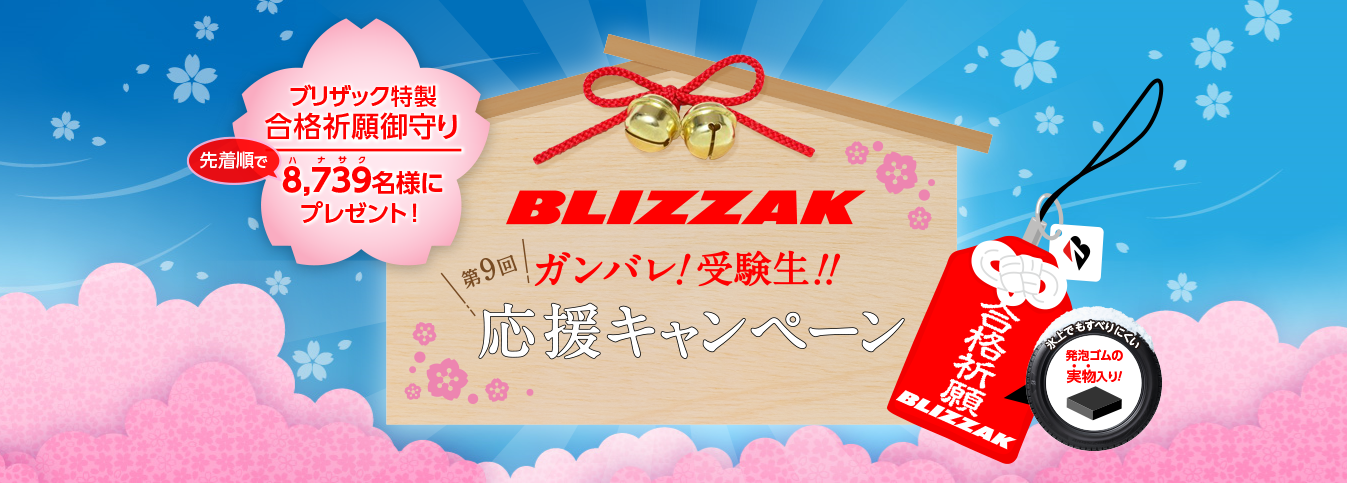 滑りにくい発泡ゴム入りの、BLIZZAK特製・合格祈願お守りを先着順でプレゼント!