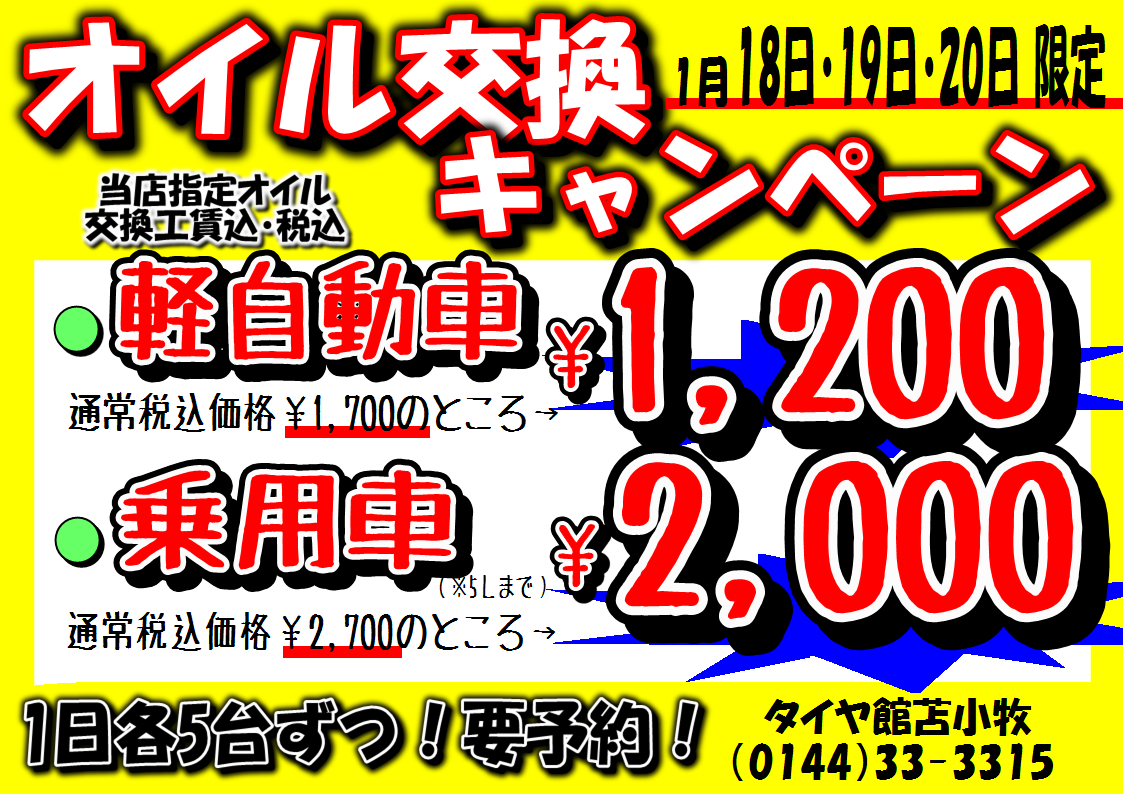 昨日から開催しています「オイル交換キャンペーン」も残りあと二日となっております。
