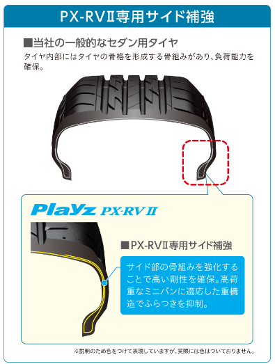 特にミニバン専用の【 Playz PX-RVⅡ 】 は、専用サイド補強でめちゃくちゃ剛性が高くて安心!