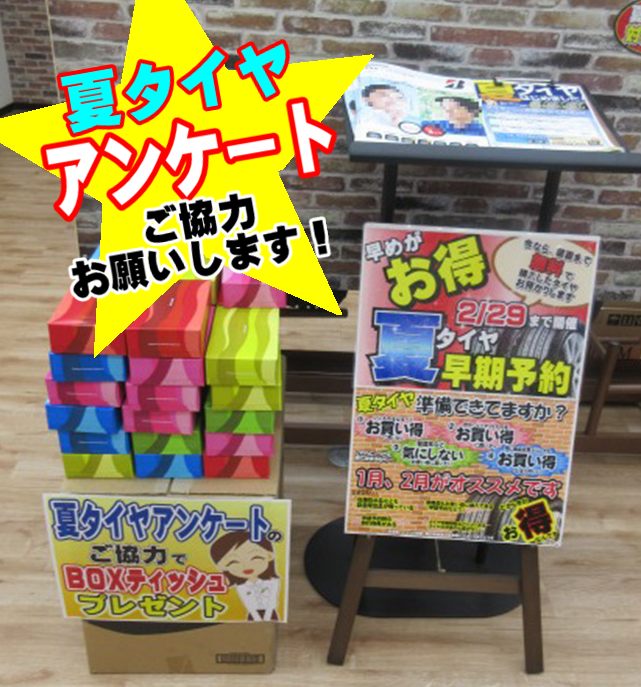 店頭にて、夏タイヤのアンケートを行っております!
