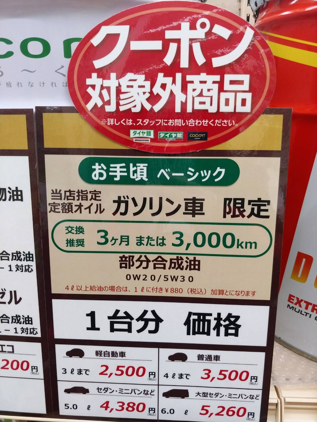 ● 普通車 ¥3,500(4リッターまで。追加1リッターごとにプラス¥880)
