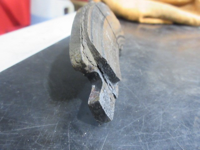 ディスクパットもサビに面していた部分が段付きで減っています。