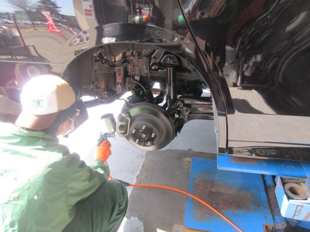 タイヤ交換時に下回り全体のサビ止めをすると…