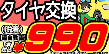 タイヤ交換の混雑緩和として、 11月1日(土)~11月24日(月)をハイシーズン期間とさせていただき、 この期間中は脱着料金が+1,100(1台分)となります。 「どうしてもこの期間中にタイヤ交換がしたい…」 「でも、高いのはイヤ…」 そんなお客様には、お得な【 メンテナンスパック 】をご用意して...