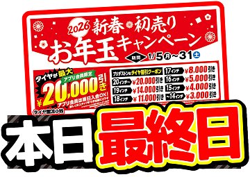 【 18時半まで営業中 】新春初売りキャンペーンは本日終了です!!