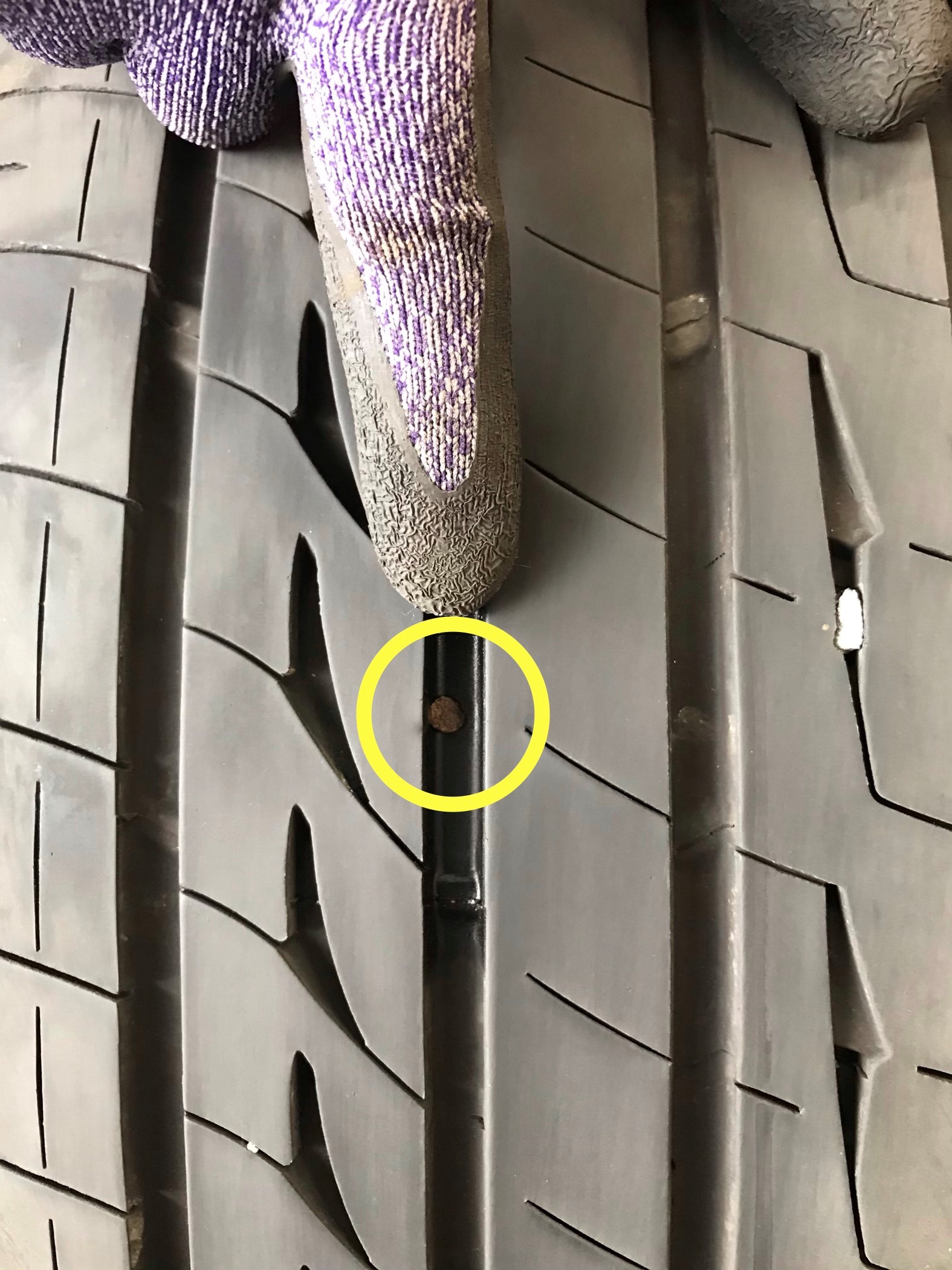 修理できるパンク(こんなキズのパンクは修理できる可能性が高いです。)