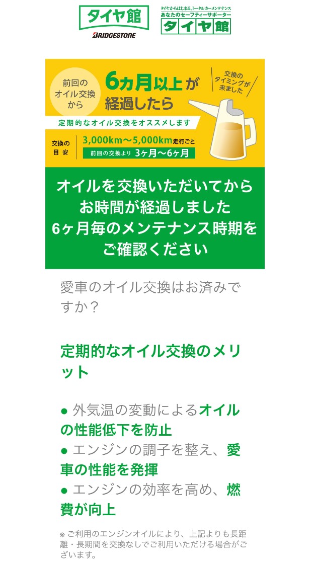 ついつい忘れがちなメンテナンス時期の把握にはタイヤ館アプリのダウンロードがオススメです!!
