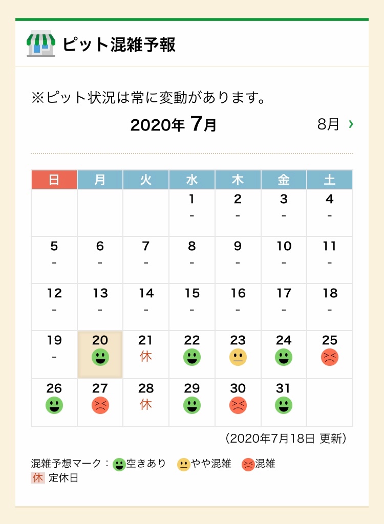 7月中にメンテナンスしようかなーとお考えでしたら、今日現在のピット混雑状況をご確認の上、お電話(0144-84-7411)にて事前予約していただければ思います。