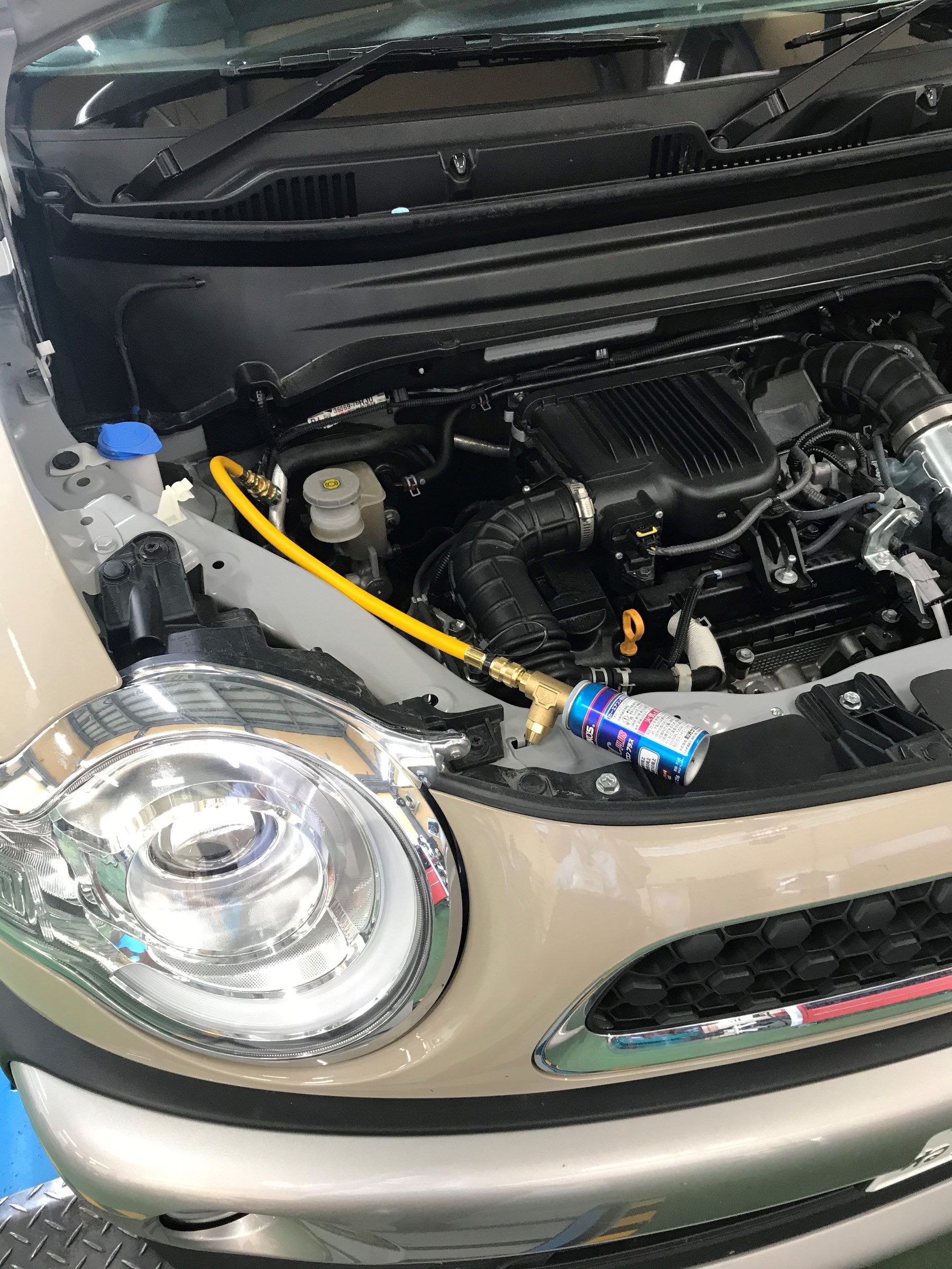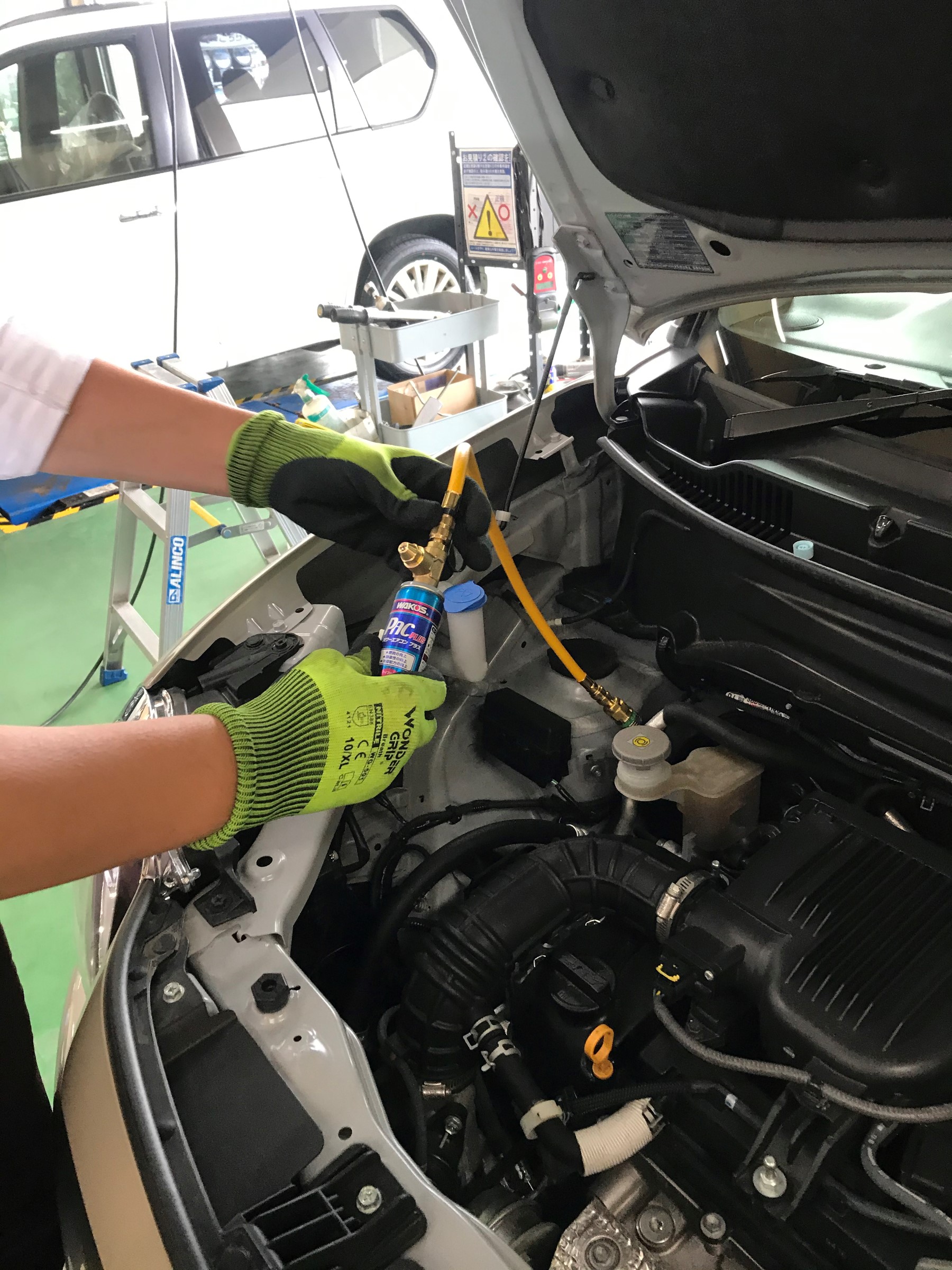 タイヤ館苫小牧西の暑がり店長、暑がり主任、それぞれ愛車へ添加剤を入れました。