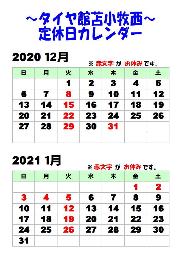 年始は1月1日(金)から1月4日(月)までお休みです。