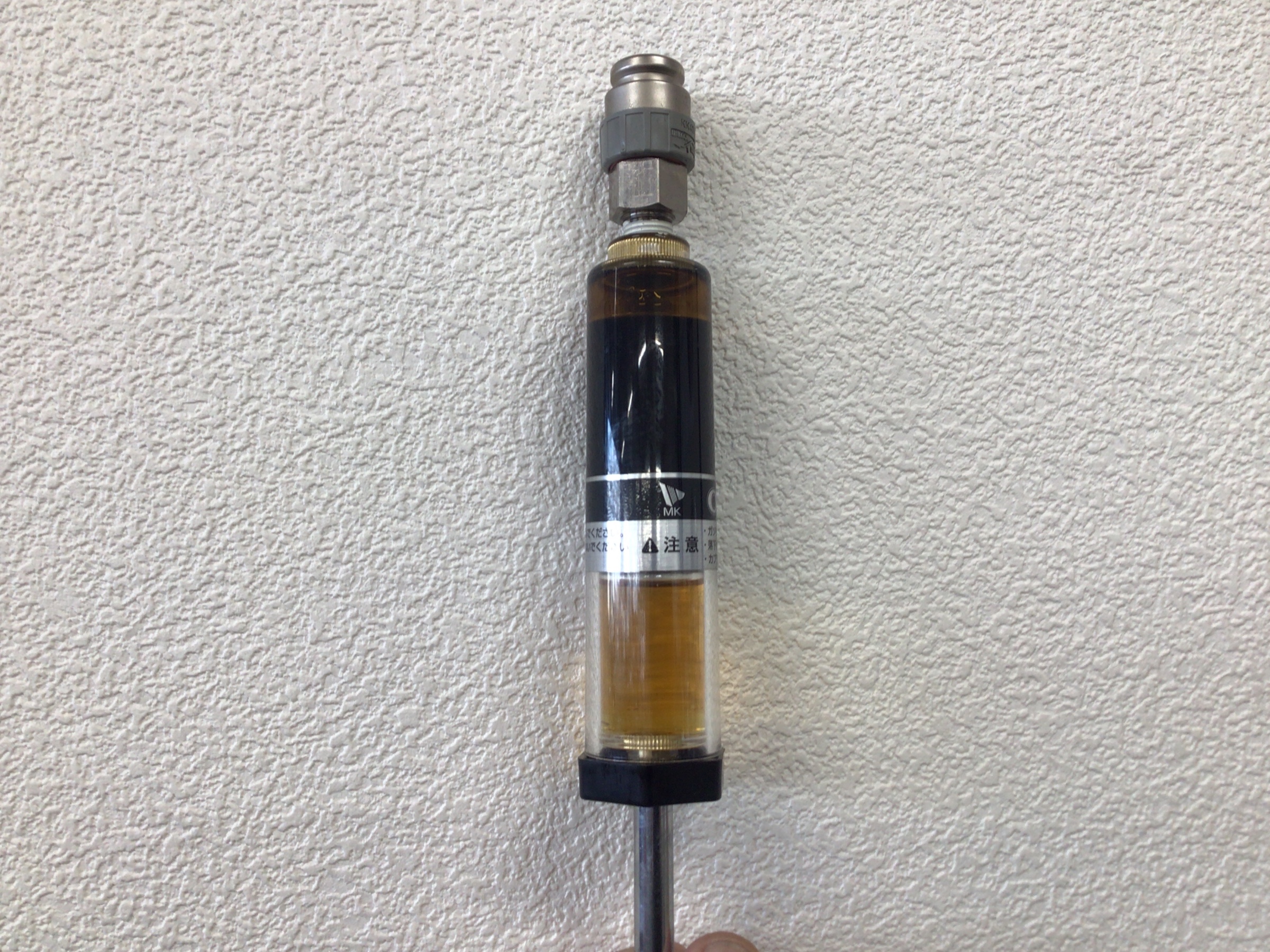 下の画像は、上の方に入っているのが交換していない古いオイル 下の方が新品の綺麗なオイルです!