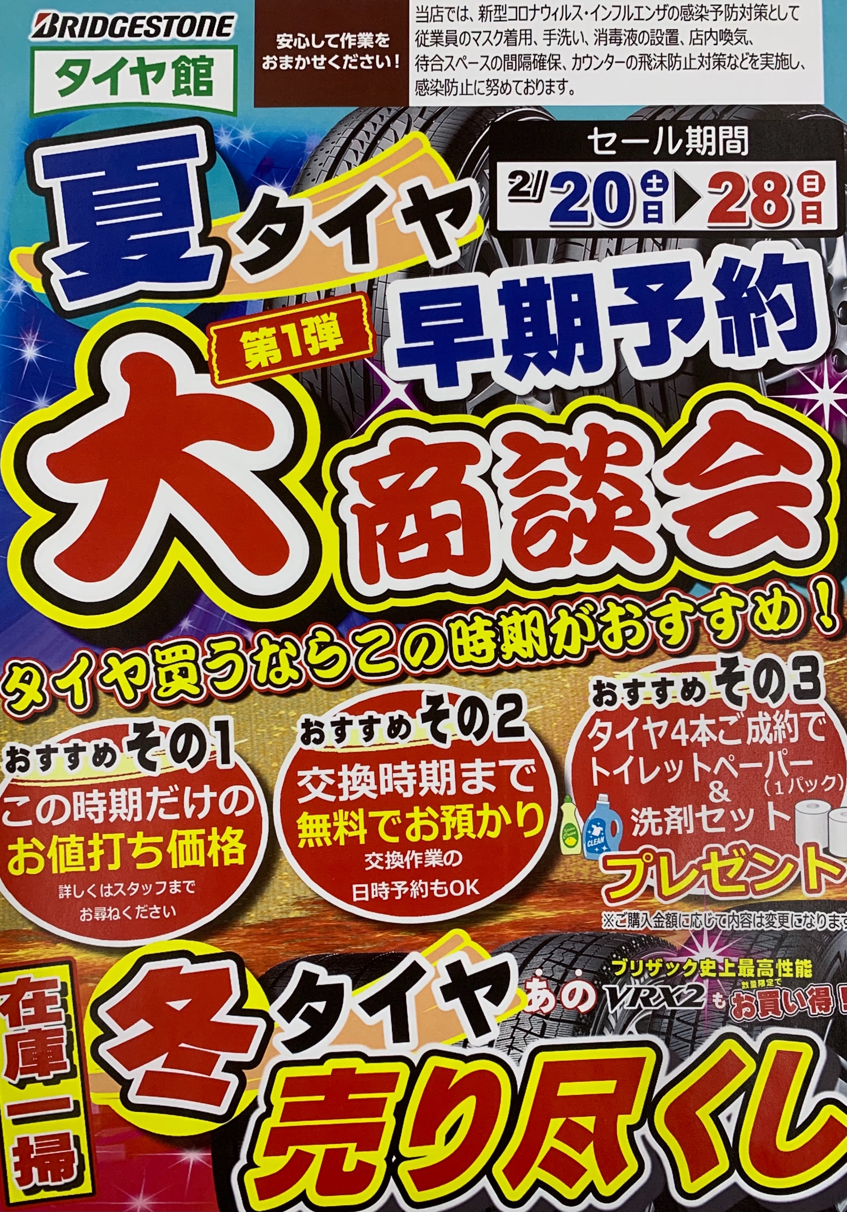 3.タイヤ4本ご成約でトイレットペーパー&洗剤セットプレゼント!