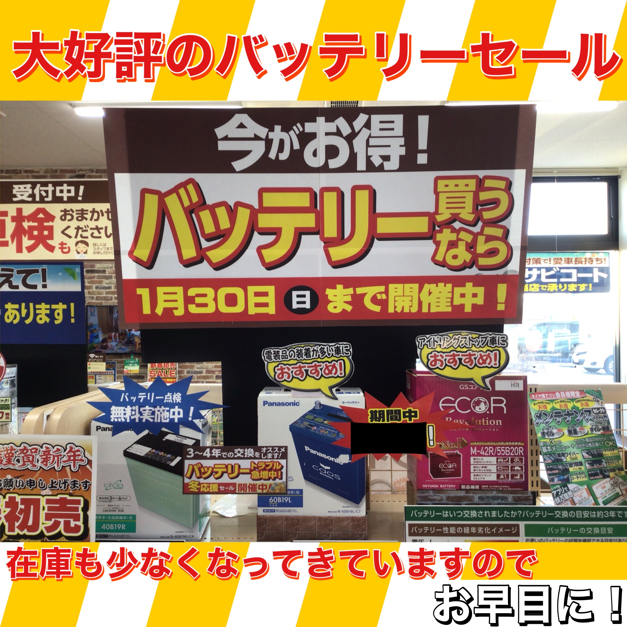 気温が低いのでこの時期はかなりバッテリー上りが多いです!