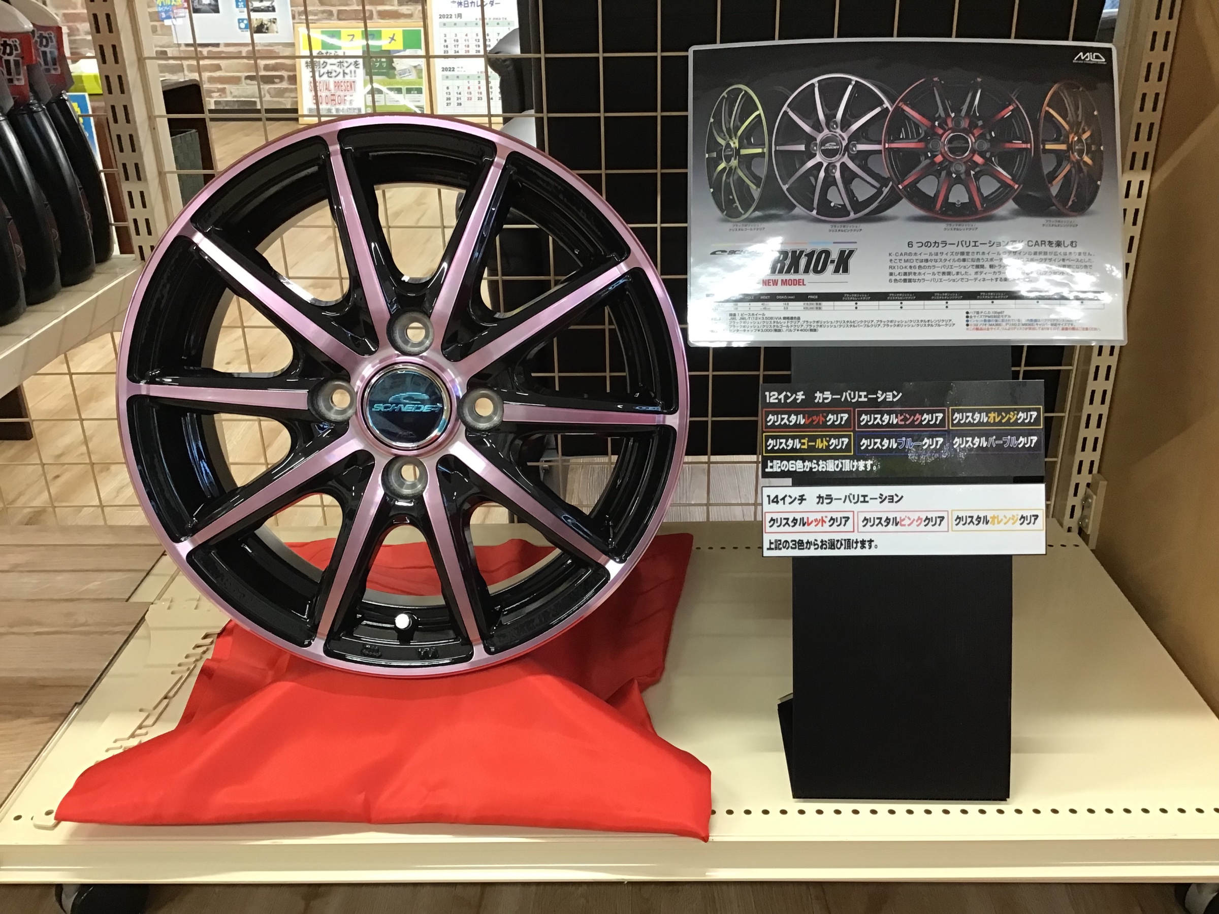 ピンク(写真のホイール)レッド•オレンジのカラーバリエーションで