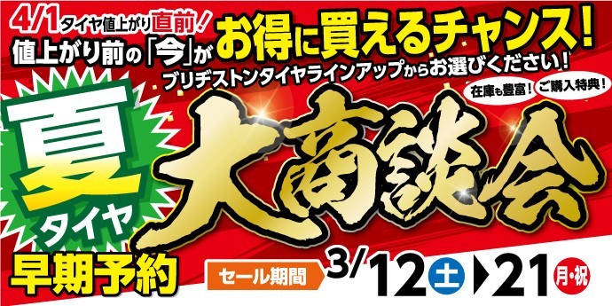 夏タイヤ早期予約商談会 本日が最終日です!