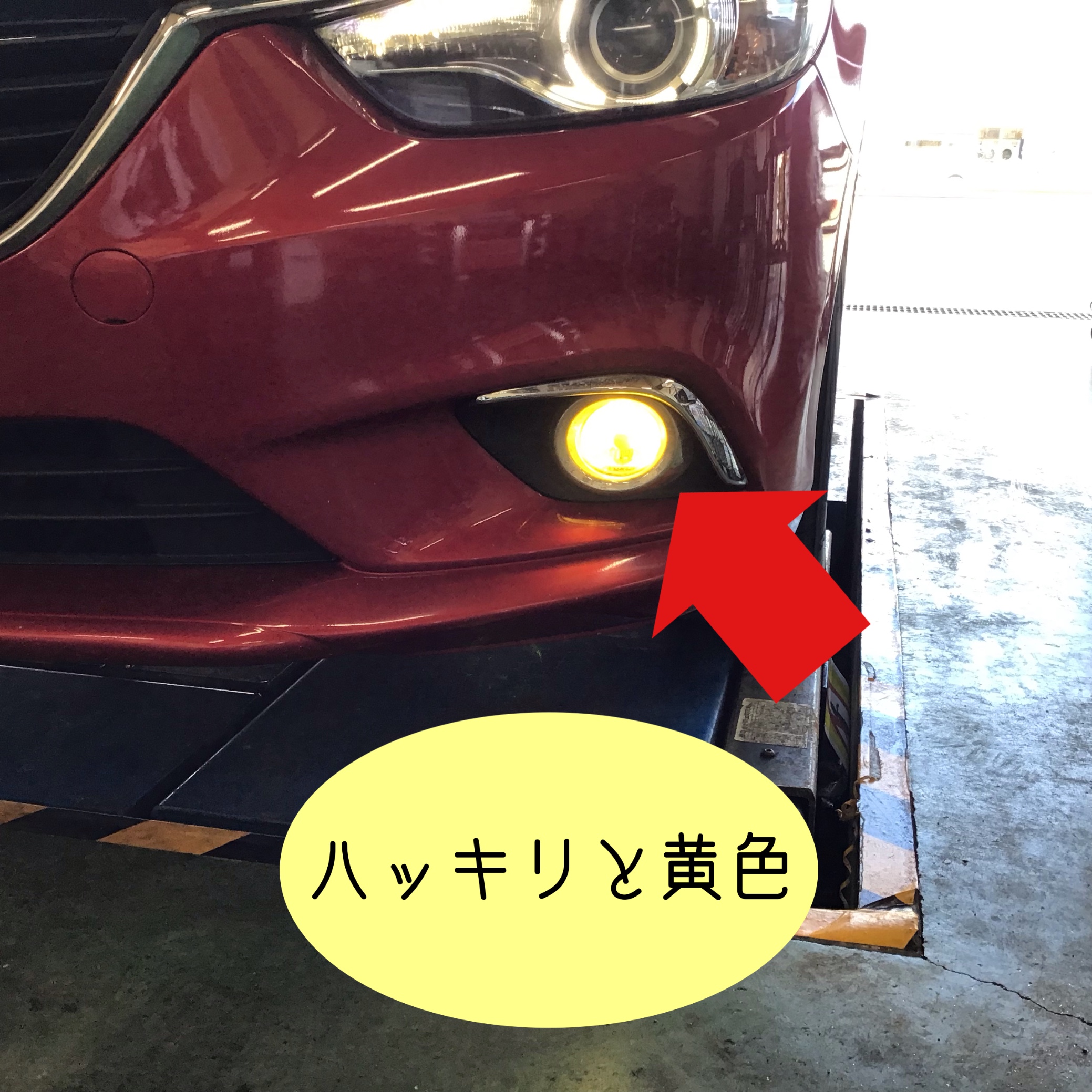 黄色にして見やすくするか、ヘッドライトと合わせてカッコよく見せるか