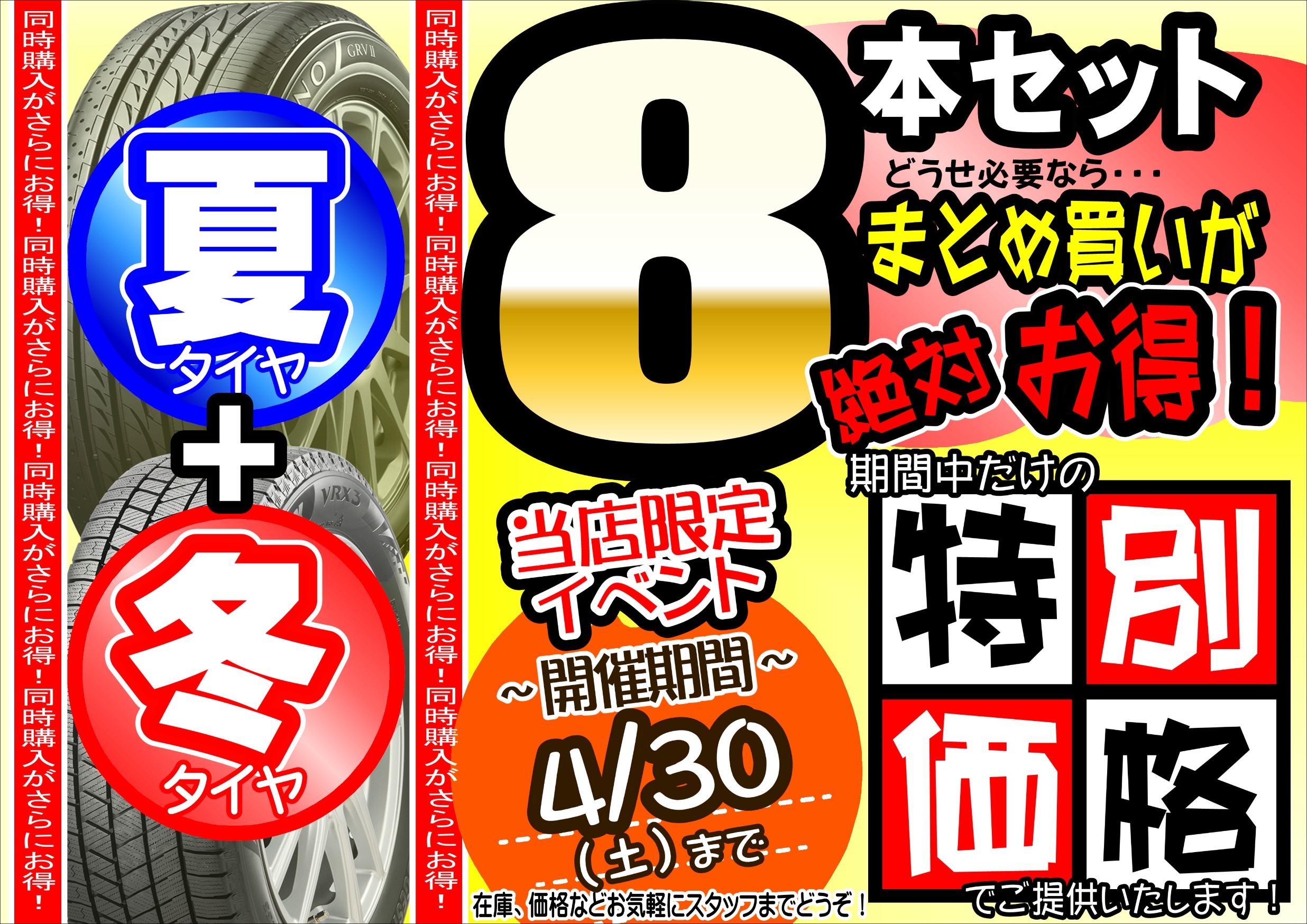 今タイヤ購入するなら8本セットがお得!?!? ポスト 2022年4月23日 こんにちは! 木村 卓と申します! タイヤ購入するなら8本セットがお得!!!!! 現在セールも開催中! セール詳細はコチラをクリック! 今だけの特別価格でご案内! 皆様のご来店お待ちしております! 担当:木村