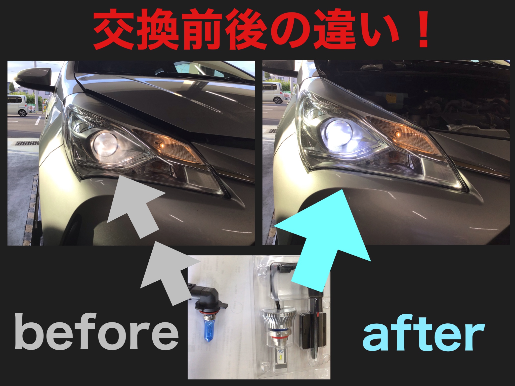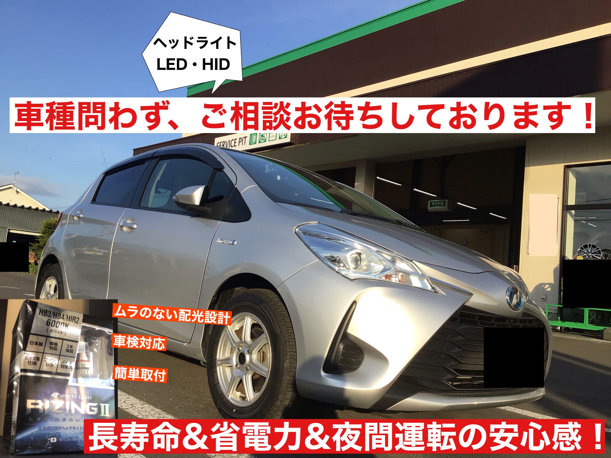 トヨタ ヴィッツ ハイブリッドにLEDヘッドライト RAIZING2 6000K 取付!