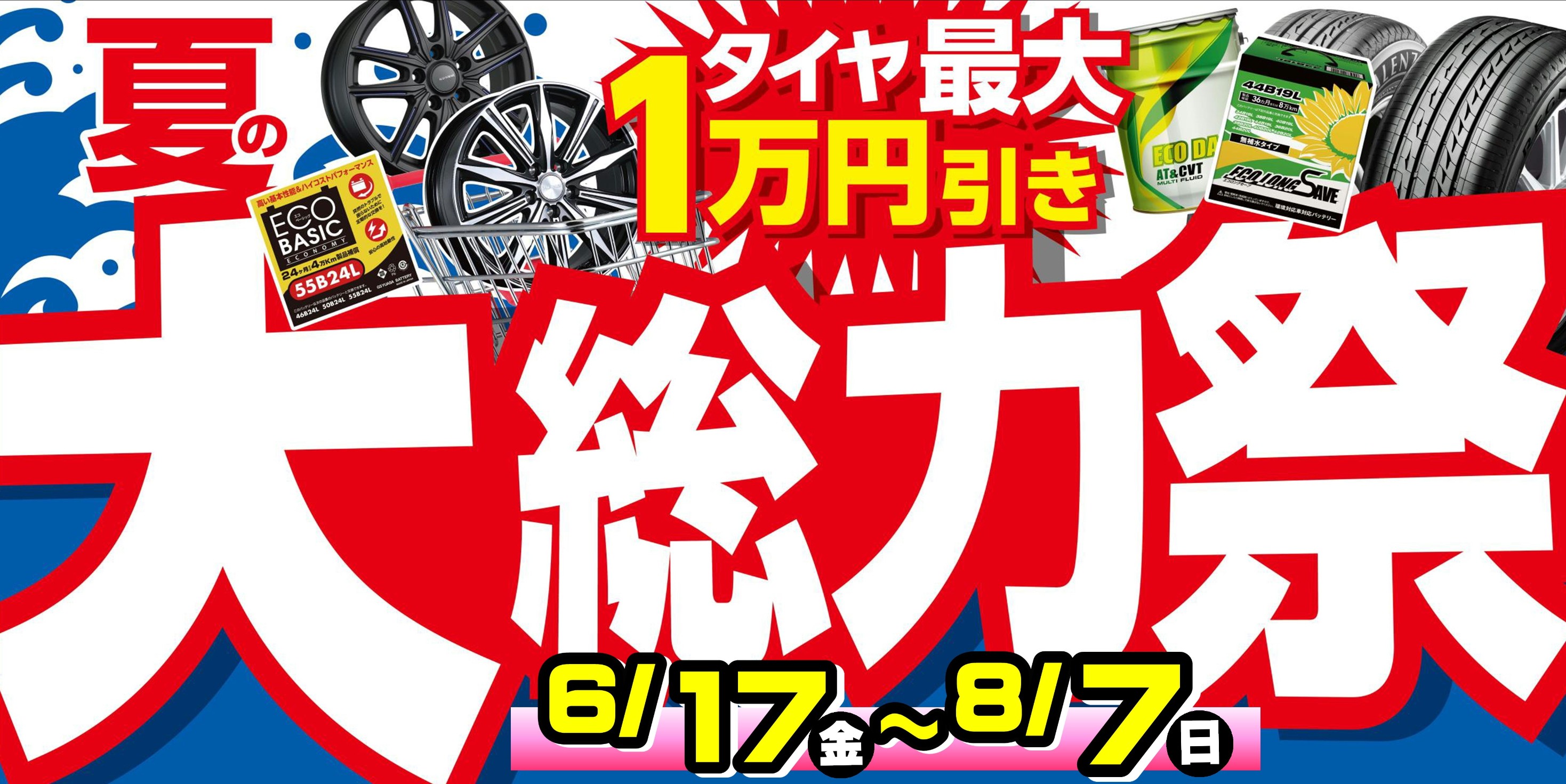 6/17から夏の大総力祭始まります! ポスト 2022年6月15日 こんにちは! 木村 卓と申します! 本日紹介するのはこちら! 6/17(金)から開催されます! 夏の大総力祭! お得な内容が盛り沢山!!!!! セール詳細につきましては再度ご報告いたします! お楽しみにっ! 現在!絶賛 開催中! 今時にぴったりなお車のメンテナンスメニュー セール詳細はこちらからどうぞ! エアコン洗浄の分かりやすい説明はこちらをどうぞ!→エアコン洗浄 担当:木村 卓