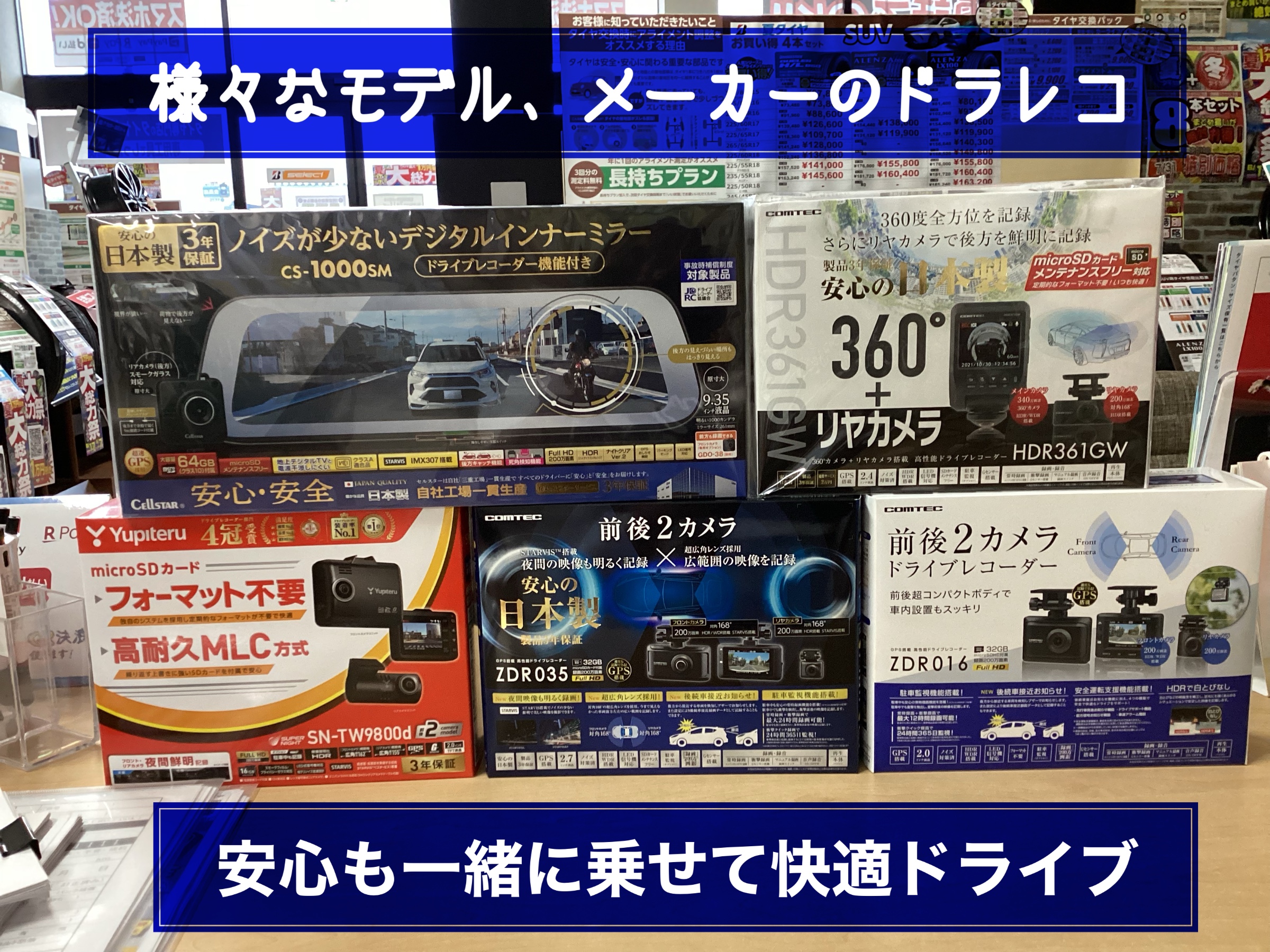 そしてただ今、大総力祭も開催中ですので、ドライブレコーダーだけではなく、夏冬のタイヤ!