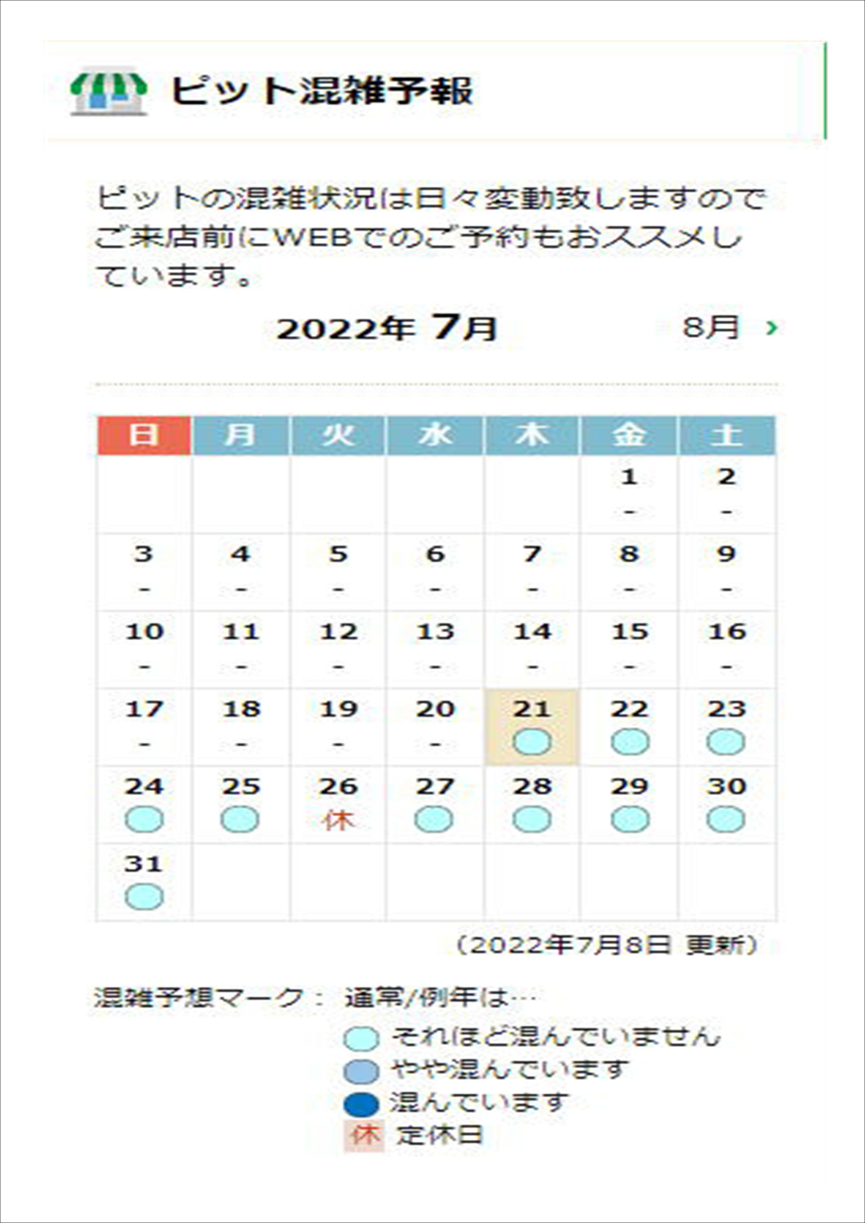 タイヤ点検・安全点検/タイヤ履き替え/オイル交換/その他ピット作業の予約