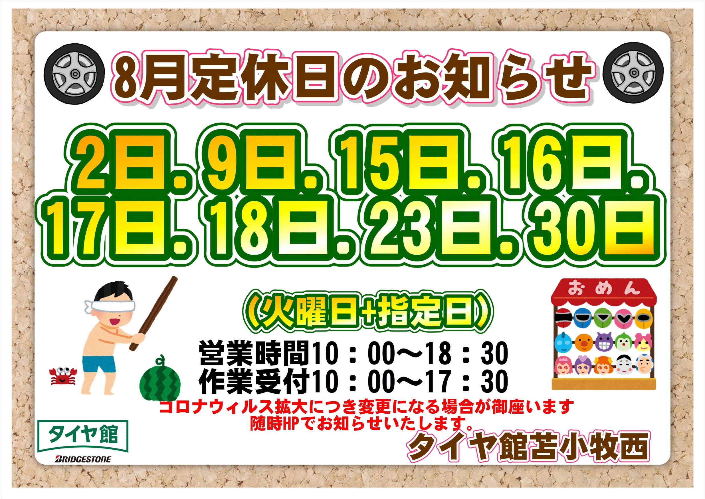 8/15~8/18は店舗はお休みとなっておりますので!