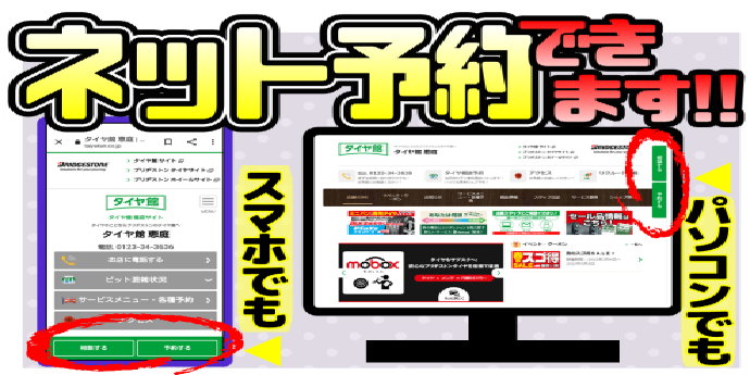 ①【タイヤをご購入予定のお客様】 ←こちらをクリック!タイヤ購入相談予約ページ ※こちらのページからは、タイヤ交換などの作業のみの予約はできません。