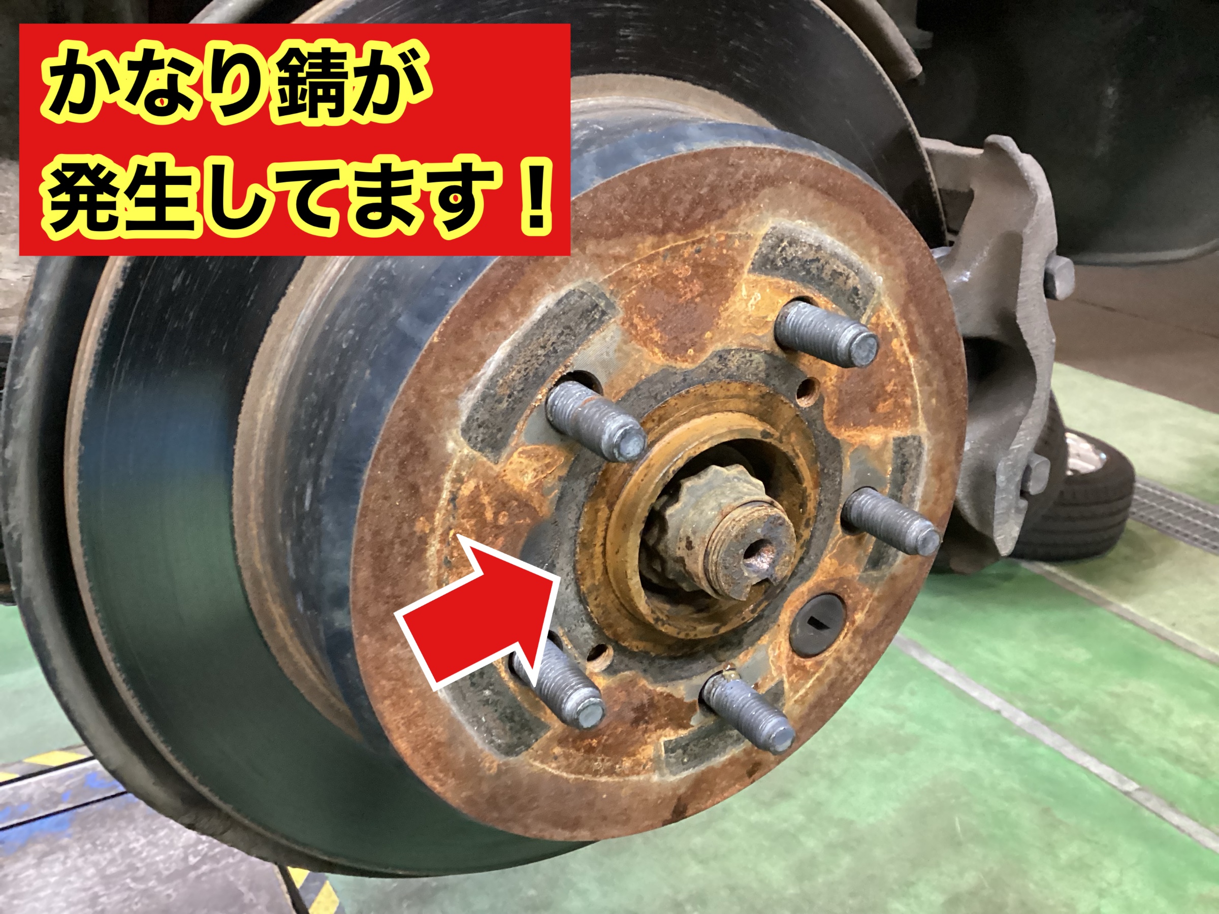 ちなみに「ハブ防錆」のハブとは写真の矢印の部分です。