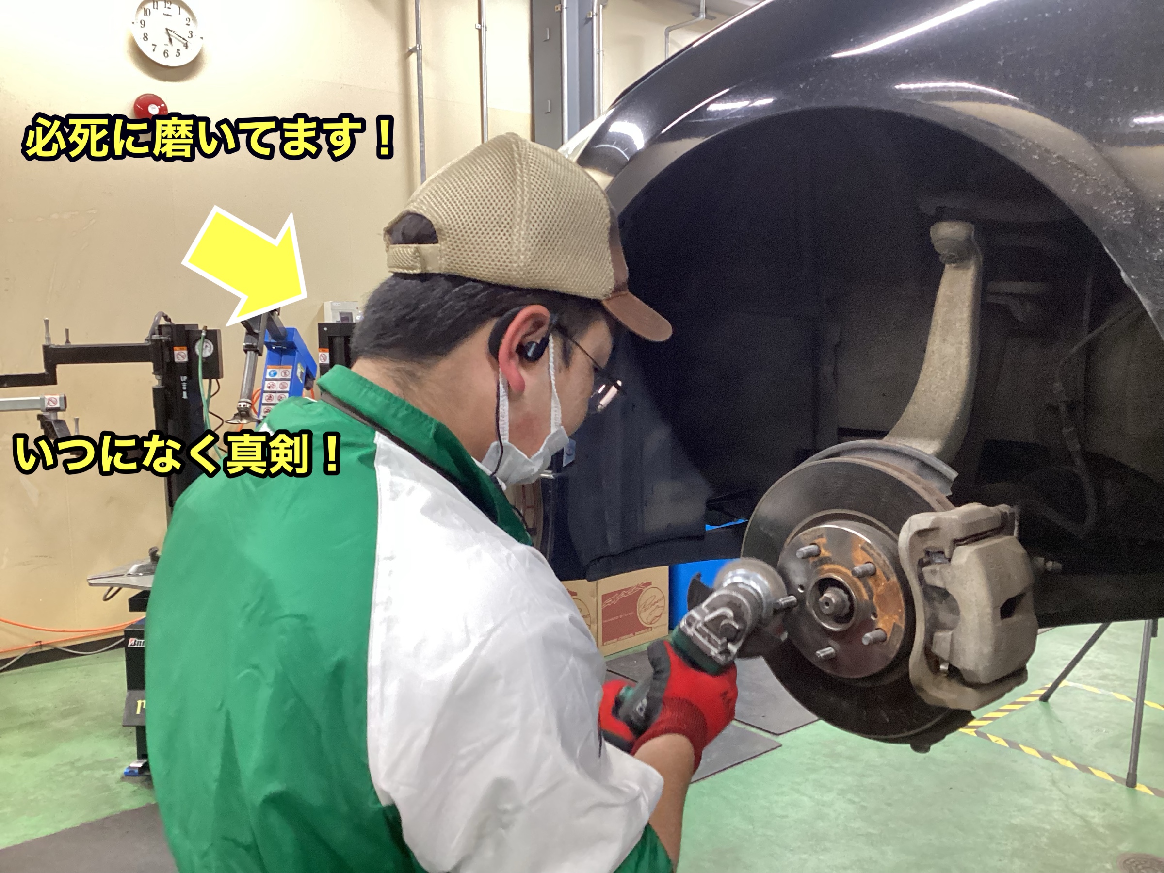 車のハブ部分の錆止め作業。見えない場所だからこそ錆は発生するんです!