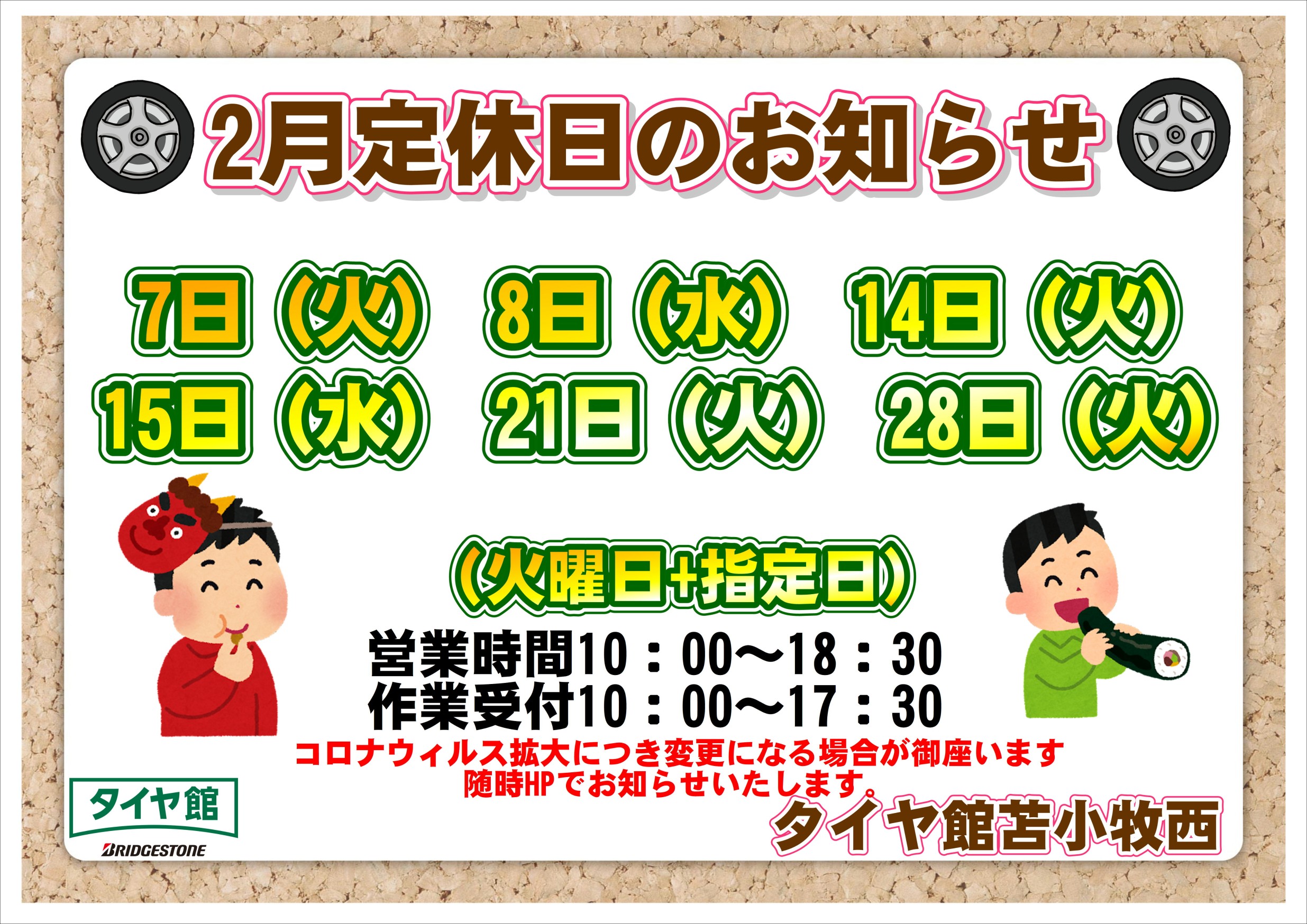 あらためて2月定休日のご案内です!