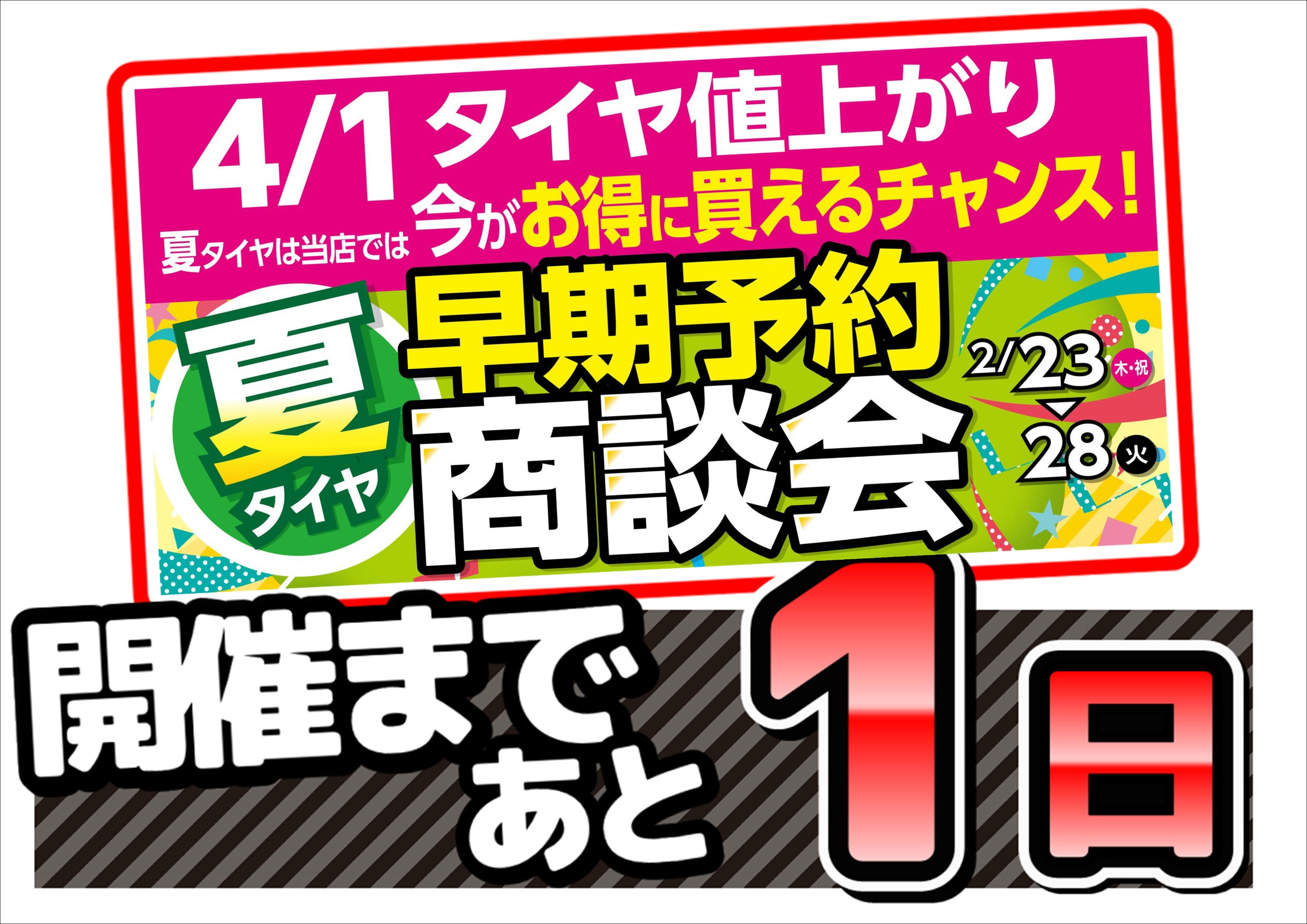 夏タイヤ早期予約商談会まで、あと1日!