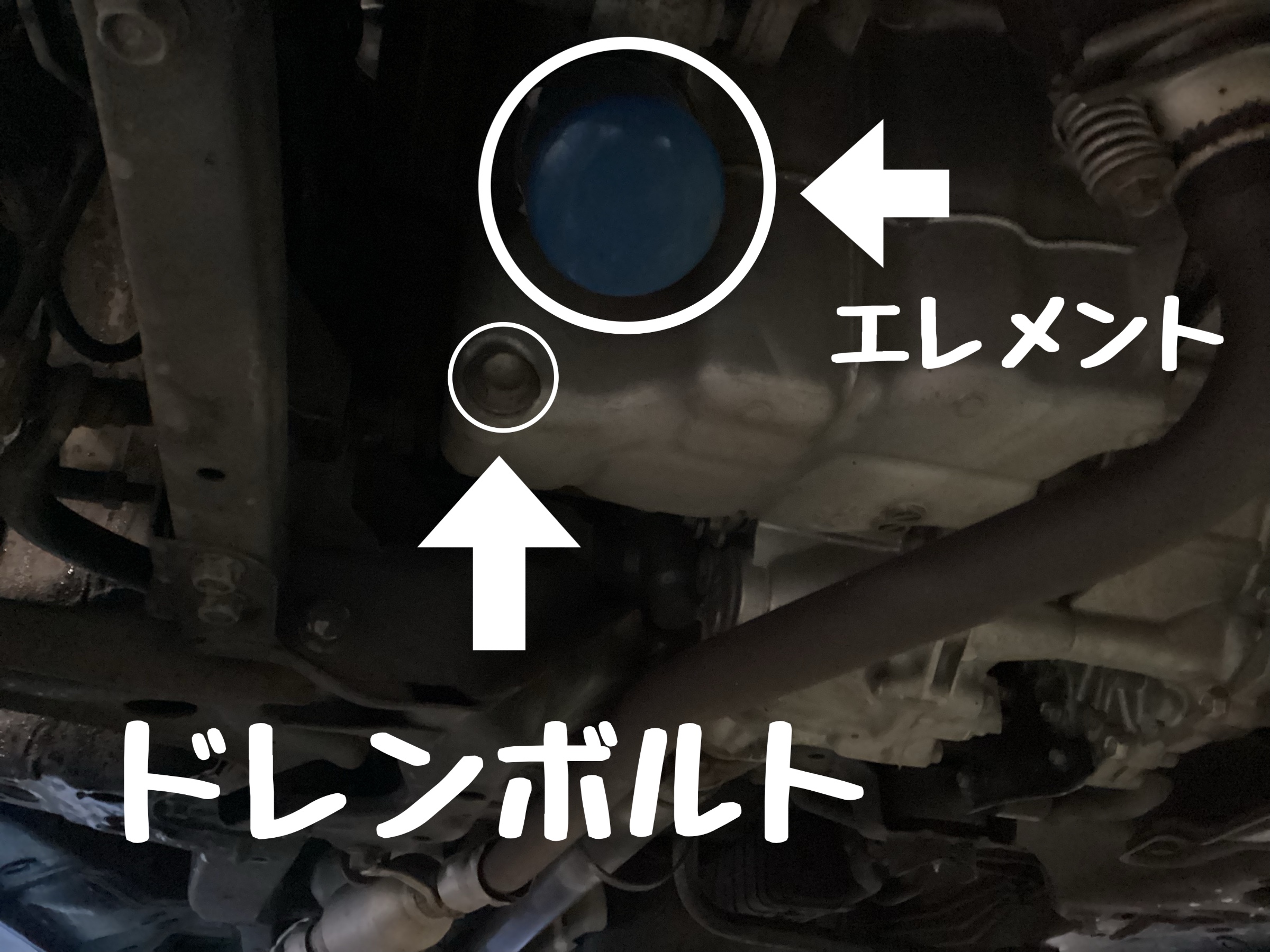 1、ドレンボルト、エレメントを外し、オイルを抜きます。