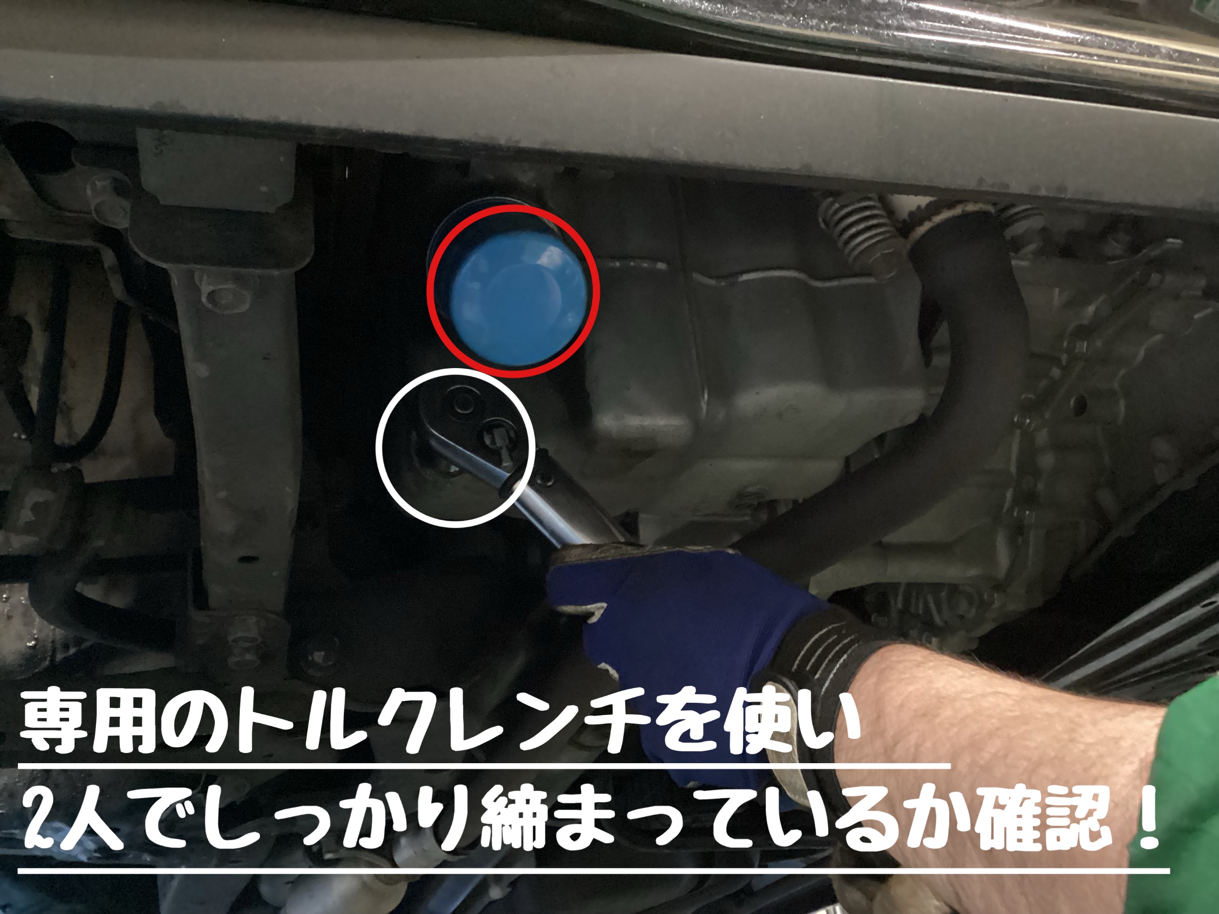 3、最後にドレンボルトからのオイル漏れなどの最終チェックを行います。