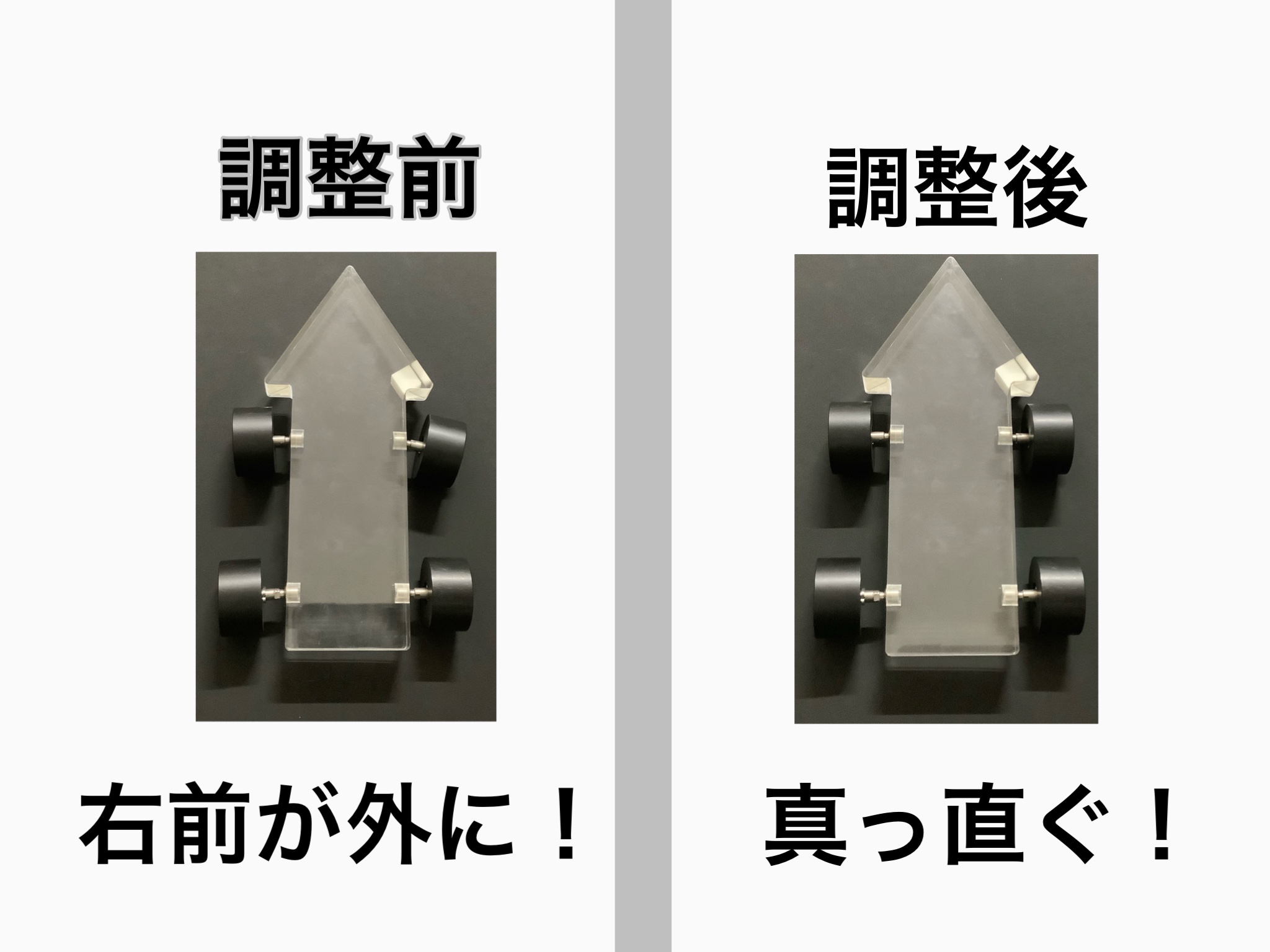 調整前だと、右前が外に向いていますね!