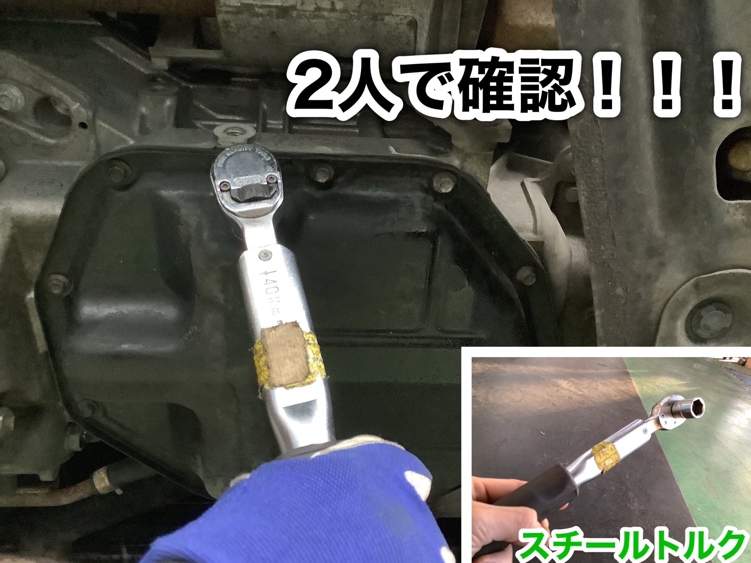 オイルを流したら適正スチールトルクでドレンボルトを締めます!