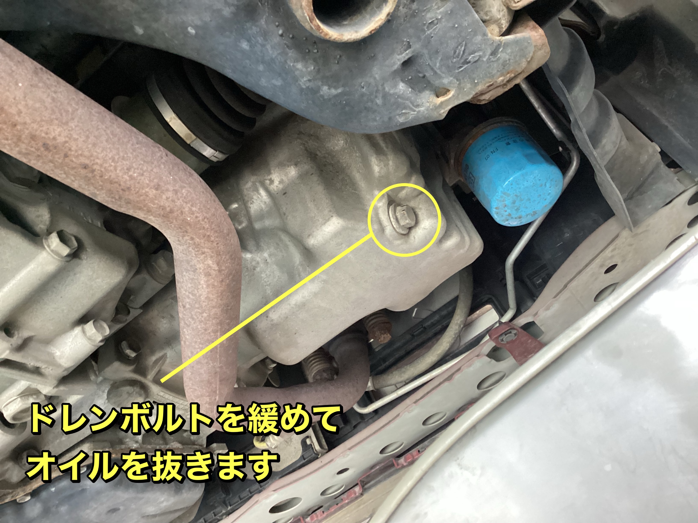 ボルトを緩めてオイルを抜きます!