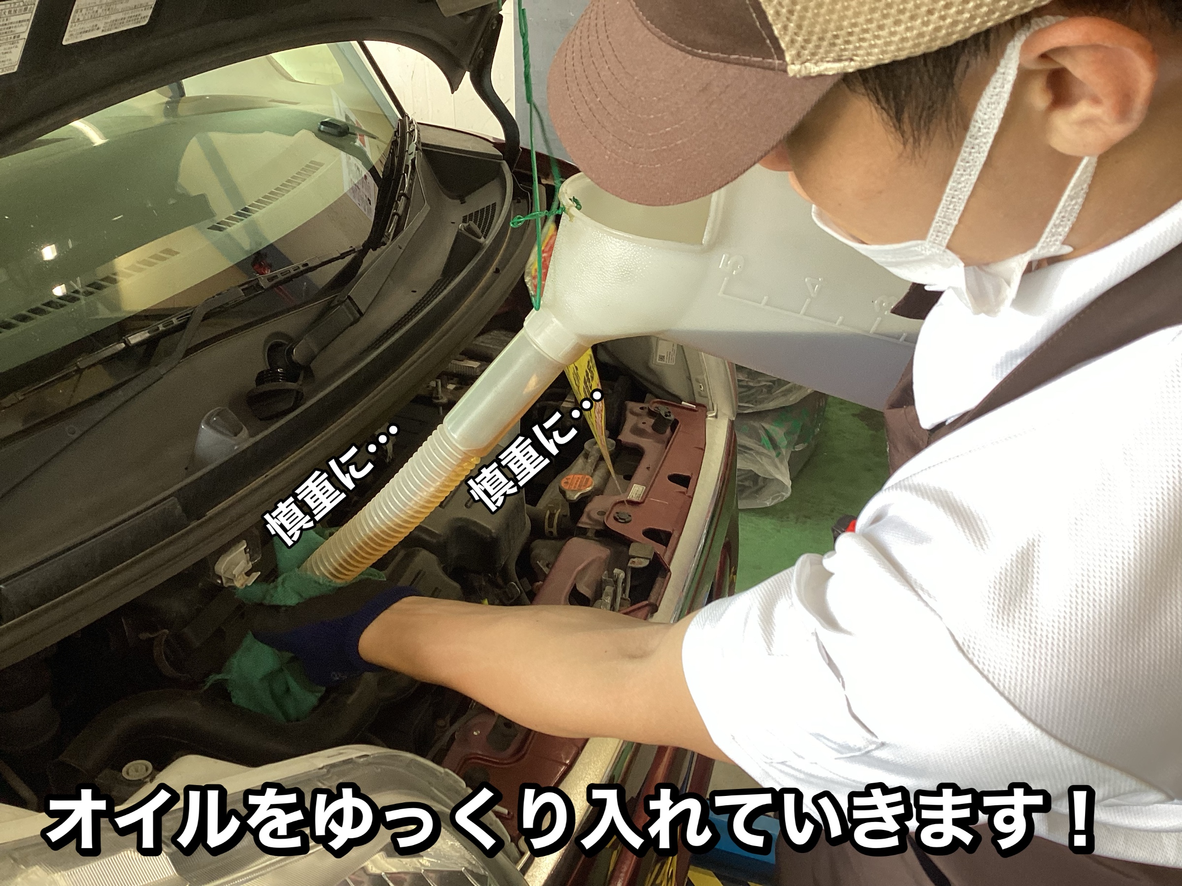 オイルの注ぎ口へゆっくりと