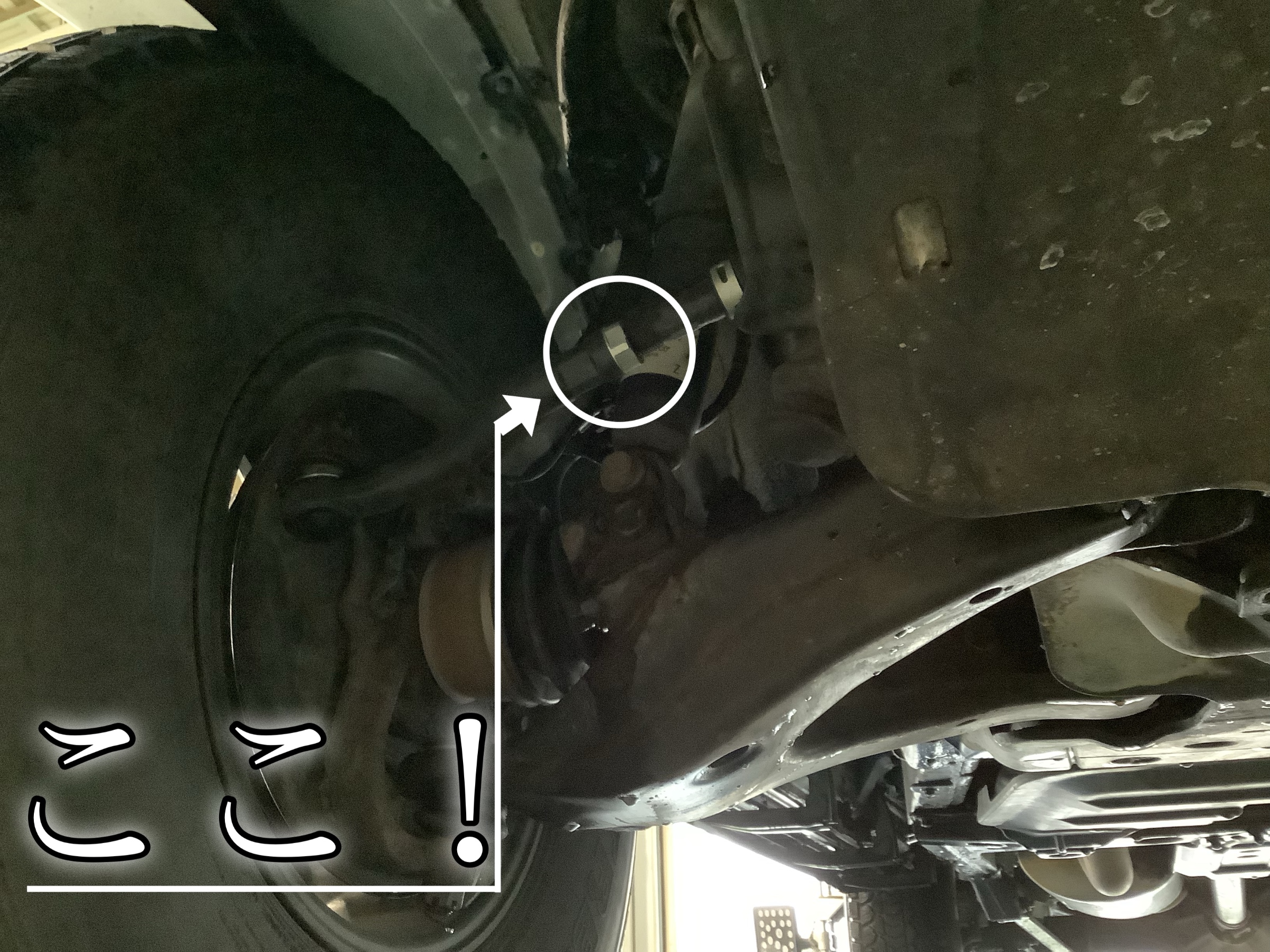 まずは車を上げて今回調整する箇所をご紹介します!